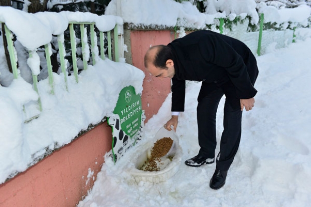 Son günlerde yaşanan kötü hava şartlarının başta ulaşım olmak üzere hayatı her alanda olumsuz etkilediğini söyleyen Başkan İsmail Hakkı Edebali, “Bu olumsuzluklardan bir tanesi de sokak hayvanlarının yiyeceksiz kalması. Bu durumun önüne geçmek için Veterinerlik İşleri Müdürlüğü’müz Yıldırım’ın her yerine yem bırakıyor” dedi.
