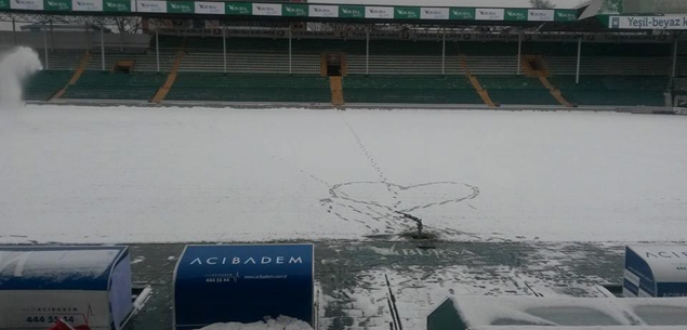 Bursa’da 2 gündür devam eden kar yağışı ile birlikte Atatürk Stadı’nın zemininde 12 santimetre yüksekliğinde kar oluştu.