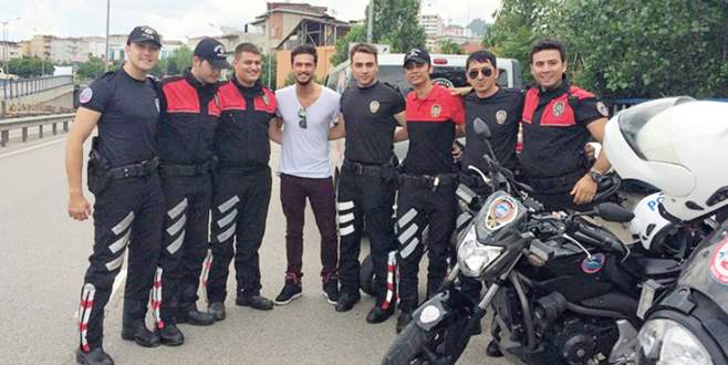 Bursa’daki çekimler sonrası özel aracıyla İstanbul’a giderken polis çevirmesine takılan oyuncu, yapılan kontroller sonrası polislerle anı fotoğrafı çektirdi. Keser fotoğrafın altına da, ‘Asayiş berkemal’ yazdı.