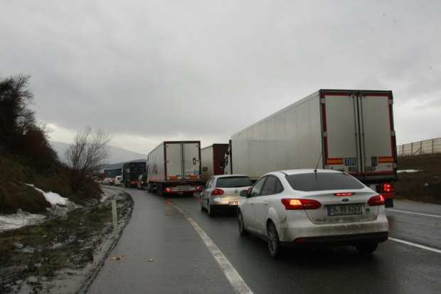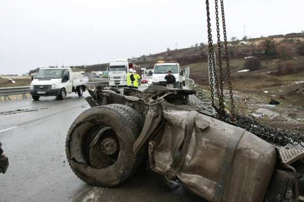 azada kullanılmaz hale gelen TIR, vinç yardımı ile yoldan kaldırılırken, yarım saatten fazla trafiğe kapalı kalan Bursa-İstanbul karayolunda kilometrelerce araç kuyruğu oluştu.