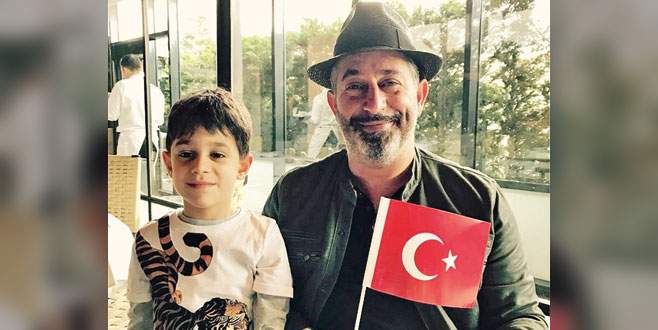 Elinde Türk bayrağı yanında oğluyla çekilen fotoğrafını sosyal medya hesabından paylaşan Yılmaz, binlerce beğeni aldı.