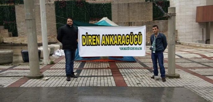 Yeşil beyazlı taraftarlar, BTSO’nun Atatürk Stadı’nın karşısındaki binasının önünde çadır kurarak Başkent’te ölüm orucuna giren Ankaragücü taraftarına yanlarında olduklarına dair mesaj gönderdi. Yeşil beyazlı taraftarlar, kurdukları çadırın önüne ‘Diren Ankaragücü’ pankartı astılar.