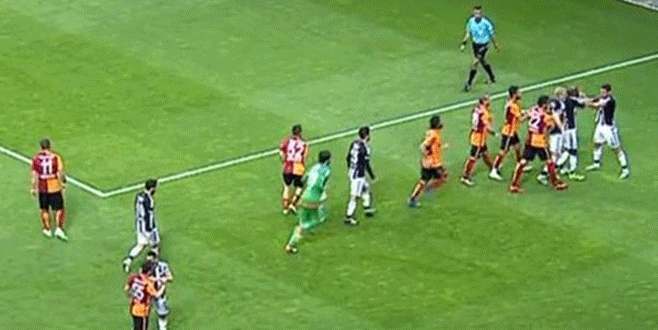 Şampiyonluk yarışını yakından ilgilendiren ve stresin bir hayli fazla olduğu Galatasaray-Beşiktaş maçının henüz 13. dakikasında iki takımın futbolcuları birbirlerine girdi.