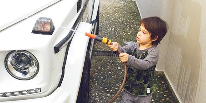 Ünlü komedyen, lüks jipini hortumla yıkamaya çalışan Kemal’in fotoğrafının altına, ‘Arabayı yıkayayım da babam mutlu olsun demiş. Hay koçum benim’ yorumunu yazdı.