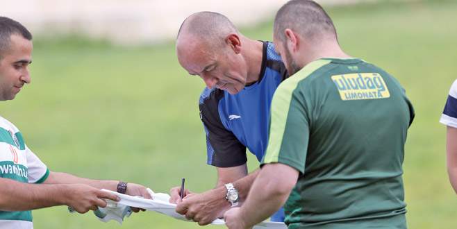 İmza aldılar! Bursasporlu taraftarlar dünkü antrenmana gelerek Fransız Teknik Adam Paul Le Guen'e büyük ilgi gösterdiler. 8 sene ago Tecrübeli teknik adamla fotoğraf çektiren yeşil beyazlılar formaları da imzalatmayı ihmal etmediler.