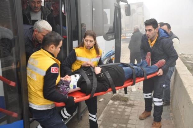 İnegöl’de kar yağışının ardından bir haftadır sabah saatlerinde görülen yoğun sis trafik kazalarına yol açıyor. Bu sabah saat 10.00 sıralarında Avarlar Kavşağı’nda, 3 ayrı trafik kazası meydana geldi. İnegöl’den Ankara yönüne giden Hikmet D. yönetimindeki 10 D 2248 plakalı kamyon, yoğun sis nedeniyle kontrolden çıkarak, Avarlar Kavşağı’nda, İsmail Öksüz yönetimindeki 16 KED 01 plakalı halk otobüsüne yandan çarptı. Camları kırılan araçta bulunan 18 yaşındaki Semanur Kalan, 29 yaşındaki Nazen Özbek, 61 yaşındaki Macide Göçmen, 32 yaşındaki Fuat Gençkal, 38 yaşındaki Selahattin Akal ve 34 yaşındaki Zeki Tüfekçi yaralandı. 6 yaralı da olay yerine gelen 112 Acil servis ambulanslarındaki sağlık görevlilerinin ilk müdahalesinin ardından İnegöl Devlet Hastanesi’ne kaldırıldı.