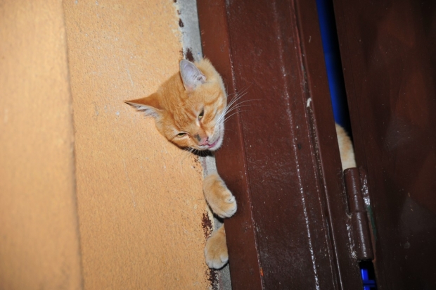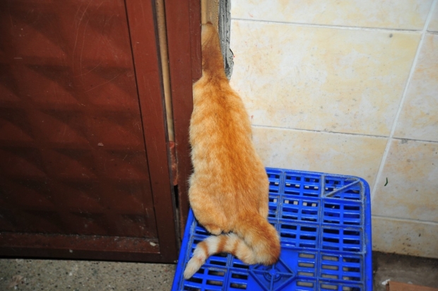 Turşu imalathanesinde çalışan kadınlar, duydukları kedi sesi ile kapı kenarına baktıklarında demir kapı ile duvar arasına sıkışan kediyi fark etti. Kediyi sıkıştığı yerden çıkarmak için uğraşan çalışanlar başarılı olamayınca durumu jandarmaya haber verdi.