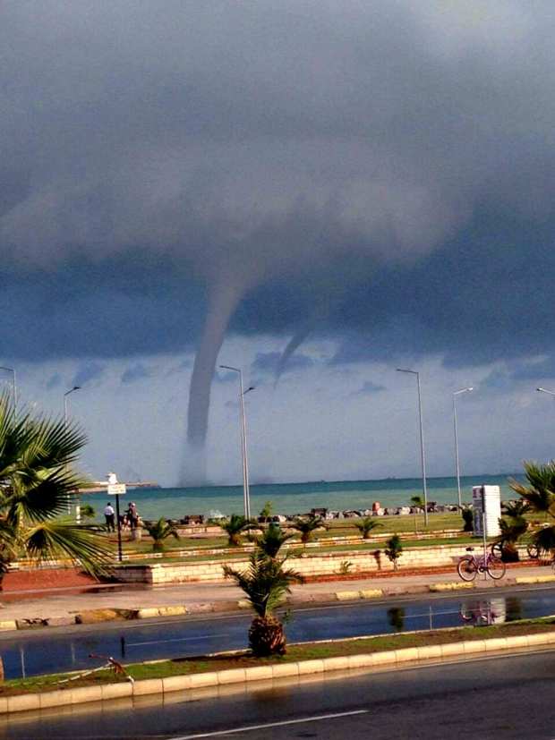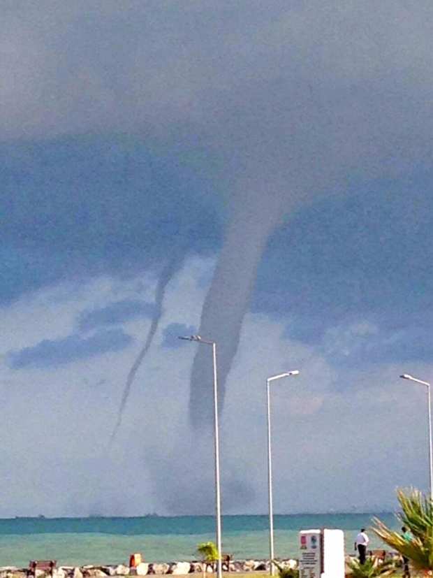 Sabah saatlerinde yağmurun durmasıyla birlikte İskenderun Körfezi’nde hortum çıktı. İlk çıkan hortumun ardından bir hortum daha görüldü.