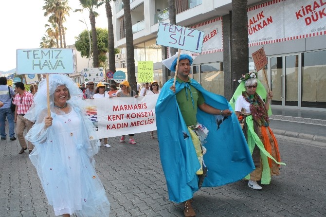 Muğla’nın Marmaris ilçesinde Dünya Çevre Haftası kapsamında sivil toplum örgütleriyle birlikte “Doğaya saygı yürüyüşü” gerçekleştirildi. Belediye Kent Konseyi Çevre Çalışma Grubu öcülüğünde “Dünya Çevre Haftası” kapsamında “Doğaya saygı yürüyüşü” düzenlendi. Ketenci Kavşağı’nda giydikleri kostümlerle çocukları ve hayvanları ile toplanan yaklaşık 200 sivil toplum kuruluşu üyeleri ana cadde üzerinde yürüyüşe geçti. “Temiz hava, su, toprak”, “Toprağına sahip çık”, “sahiller halkındır yağmaya dur de” ve “ madene hayır” dövizleri taşıyan grup, “Türkiye çöl olmasın, ranta dur” sloganları attı. Yaklaşık 4 kilometre yürüyen gruba çevrede bulunan yabancı turistlerde alkışlarla desteklerken ,grubunun ilginç kostümleri ilgi odağı oldu. Grup daha sonra 19 Mayıs Gençlik Meydanı’nda toplandı. Meydanda “çevre” konulu resim sergisi açılışı gerçekleştirildi. Marmaris Belediyesi Kent Konseyi Çevre Çalışma Grubu Başkanı Gürsel Koç, “ Marmaris doğası ve denizinin korunması için tüm siyasiyi ve sivil toplum kuruluşlarıyla ortak mücadele gerekmektedir. Doğamıza sahip çıkmak için çıktığımız yolda bizlere destek veren herkese teşekkür ederim” dedi. Marmaris Çağdaş Yaşamı Destekleme Derneği, Zirve Dağcılık, Eğitim-Sen, Fotoğraf Tutkunları, TEMA, Hayvan severler Derneği üyeleri doğanın korunması için el birliği ile mücadele kararı aldı.