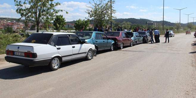 Zincirleme şekilde meydana gelen kazada otomobiller kullanılamaz hale geldi. Kaza bugün 15.30 sıralarında Çan Çevre Yolu’nda meydana geldi. Çan’ın Hacılar Altı Çınarlığı’nda düzenlenen modifiye araç gösterisinden dönen 5 otomobil kaza yaptı. Zincirleme şekilde birbirine giren araçlar kullanılamaz hale gelirken, yaralanan olmadı. Olay yerine gelen trafik polisleri kazayla ilgili soruşturma başlattı.