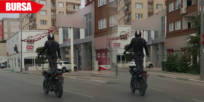 Bayramın ikinci günü sabah saatlerinde Yıldırım ilçesi Erikli Mahallesi’nde bir motosiklet sürücüsünün ayakta motosiklet kullanması, yanından geçen araçların içindeki yolcular tarafından cep telefonu ile görüntülendi. Plakası olmayan motosikletin sürücüsünün rahat tavırları gözlerden kaçmadı.