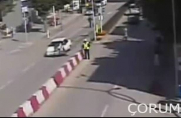 Çorum’daki üçüncü kazada ise, otomobil sürücünün yaptığı hatayı gözler önüne serdi. Dikkatsiz şekilde yola çıkan otomobil sürücüsü karşı şeritten gelen motosikletliye çarptı. Motosikletli yola savruldu.