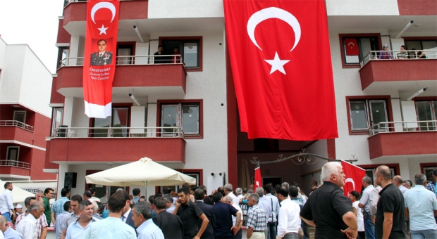 Şehidin fotoğrafının ve Türk bayrağının asıldığı evinin önünde çok sayıda akraba ve komşusu aileye destek için bulunuyor. Taziye çadırının önünde de sağlık ekipleri bekletiliyor.