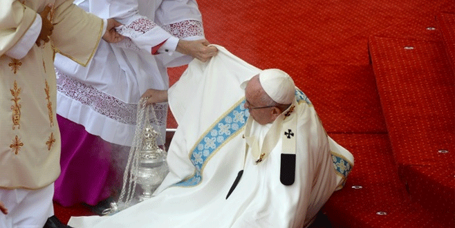 Papa Francis, Dünya Gençlik Günleri’ne katılmak üzere geldiği Polonya’da dün gerçekleştirilen ayin sırasında yere düştü.