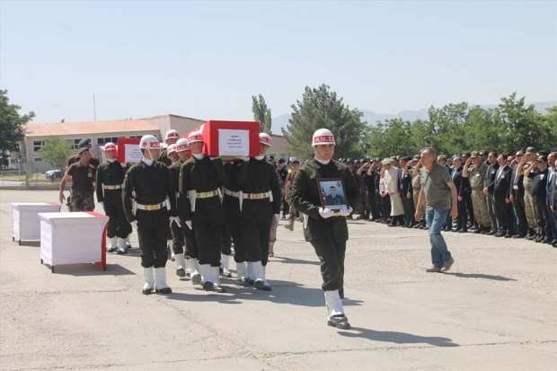 23. Jandarma Sınır Tümen Komutanlığındaki törende, şehitlerin Türk bayrağına sarılı naaşları, katafalka konuldu, saygı duruşunda bulunuldu, öz geçmişleri okundu ve dua edildi.