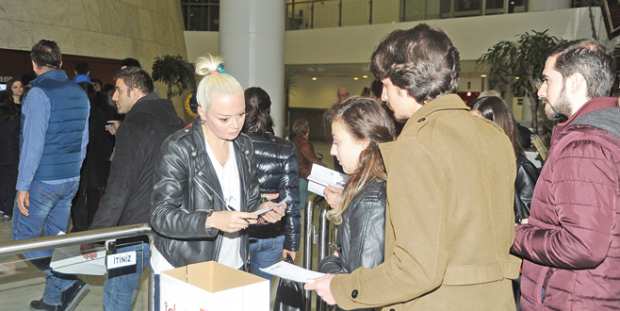 Sanatçıyı Bursa’da yalnız bırakmayan eşi Sinem Türkmen, bilet kontrolü yaparak işi sıkı tuttu.