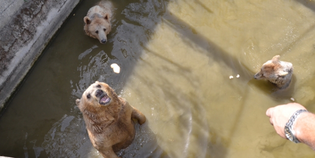 Yetkililer, normal sıcaklıklarda ayıların günde 2-3 kez serinledikleri gölete, bugün 6-7 kez girdiklerini belirtti.