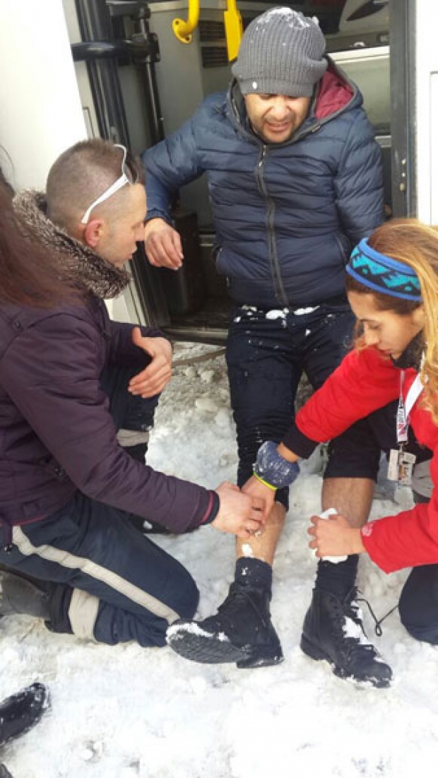 Son anda karın altında kalmaktan kurtulanlar kendini şanslı sayarken, 1 kişi ise dizlerine kadar karın içinde kaldı. Çevredekilerin yardımı ile çıkarılan tatilcinin keyfi eziyete döndü. Ayaklarında kırıklar olduğu ifade edilen kişi, 112 Acil Servis ekipleri tarafından Bursa Devlet Hastanesine kaldırıldı.