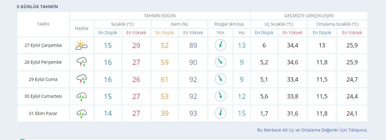 CNN TÜRK Meteoroloji Danışmanı Prof. Dr. Orhan Şen, sıcaklığın mevsim normallerinde olacağını belirterek “Türkiye sonbahara hazırlanıyor. Önümüzdeki hafta itibari ile daha çok soğukluklar hissedilecek. Bir yağış gelecek. İtalya, Yunanistan ve Libya’nın ortasındaki Akdeniz bölgesinde alçak basınç merkezi var. Bu bölgelerde bugün ve yarın sağanak yağış yapacak” dedi.
