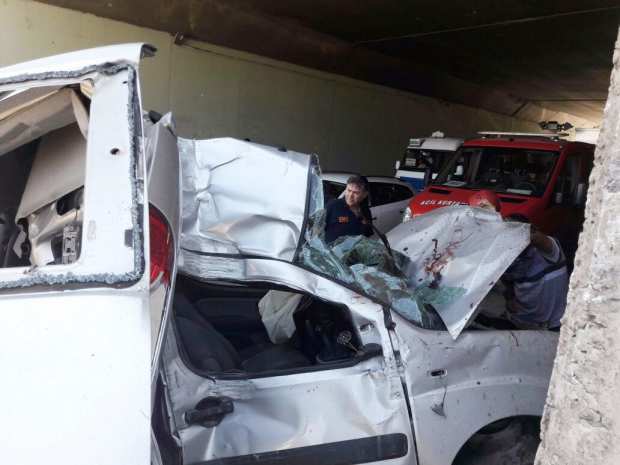 Edinilen bilgiye göre, 16 NPT 92 plakalı kamyonet viraja sert girince önce direğe, ardından da duvara çarptı.