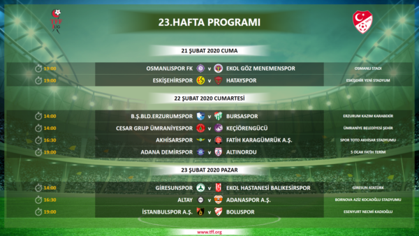 Türkiye Futbol Federasyonundan yapılan açıklamaya göre ligde 22. haftanın sonuçları şöyle:
