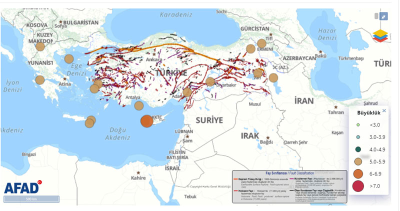 Ayrıca Türkiye ve yakın çevresinde 1900’den bugüne kadar 6,5 ve üzeri büyüklükte 85 deprem meydana geldi. Bunlardan 20’si ülkede ciddi can ve mal kaybına neden oldu.