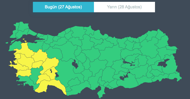 Meteoroloji Genel Müdürlüğü’nden yapılan açıklamaya göre, öğle saatlerinden sonra İzmir, Manisa ve Aydın’ın iç kesimleri, Balıkesir’in güneyi, Kütahya, Uşak, Afyonkarahisar, Isparta ve Burdur ile Antalya’nın batısının iç kesimlerinde yerel olarak kuvvetli gök gürültülü sağanak bekleniyor.