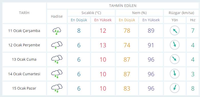 Meteoroloji Genel Müdürlüğü tarafından yapılan son değerlendirmelere göre: Ülkemizin iç ve batı kesimlerinin parçalı ve çok bulutlu, Marmara, Ege, Batı Akdeniz ile Mersin, Karaman, Eskişehir ve Düzce çevrelerinin yağmur ve sağanak yağışlı, İç Ege’nin Yüksekleri ile Batı Akdeniz’in Toroslar kesiminin yüksekleri karla karışık yağmur ve kar yağışlı, diğer yerlerin az bulutlu ve açık geçeceği tahmin ediliyor. Yağışların; Ege ve Batı Akdeniz ile Edirne, Tekirdağ, Çanakkale ve Balıkesir çevrelerinde kuvvetli ve yer yer şiddetli olması bekleniyor. Gece ve sabah saatlerinde doğu kesimlerde yer yer pus ve sis bekleniyor.