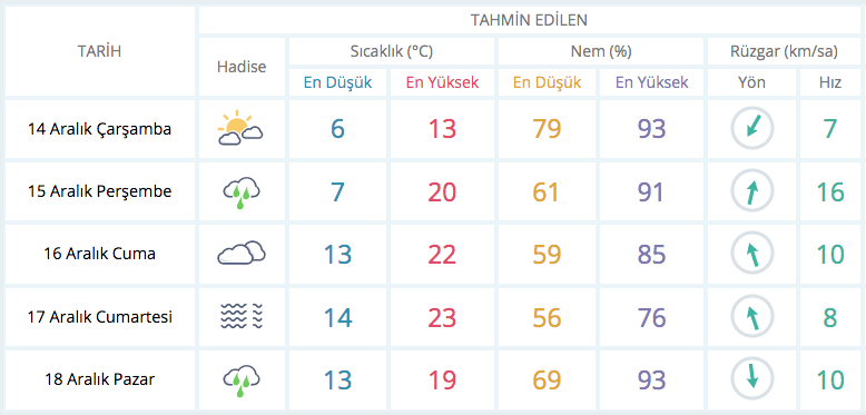 BURSA 5 GÜNLÜK TAHMİN