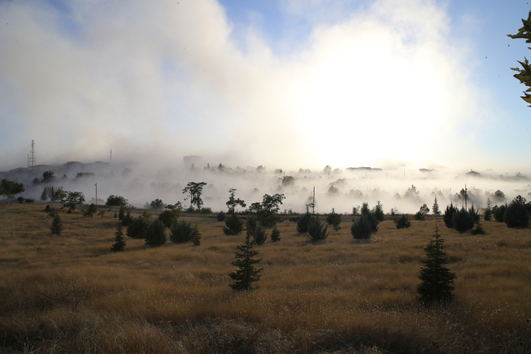 Yıkımın ardından alanda yüksek toz bulutları oluştu.