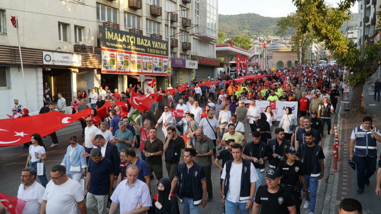 Bursa Valiliği öncülüğünde düzenlenen program kapsamında Heykel’den başlayan yürüyüş, 15 Temmuz Demokrasi Meydanı’nda son buldu. Marşlar ve tekbirler eşliğinde ilerleyen kalabalık, meydanı kırmızı beyaza bürürken, alanda duygu dolu anlar yaşandı. Programa Bursa Valisi Erol Ayyıldız, Bursa Büyükşehir Belediye Başkanı Mustafa Bozbey, AK Parti Bursa milletvekilleri, İYİ Parti Bursa Milletvekili Selçuk Türkoğlu ve kent protokolünden çok sayıda isim katıldı. Gençlik ve Spor İl Müdürlüğü tarafından Vali Ayyıldız’a Türk bayrağı ve sancak teslim edildi.