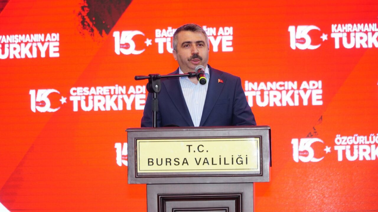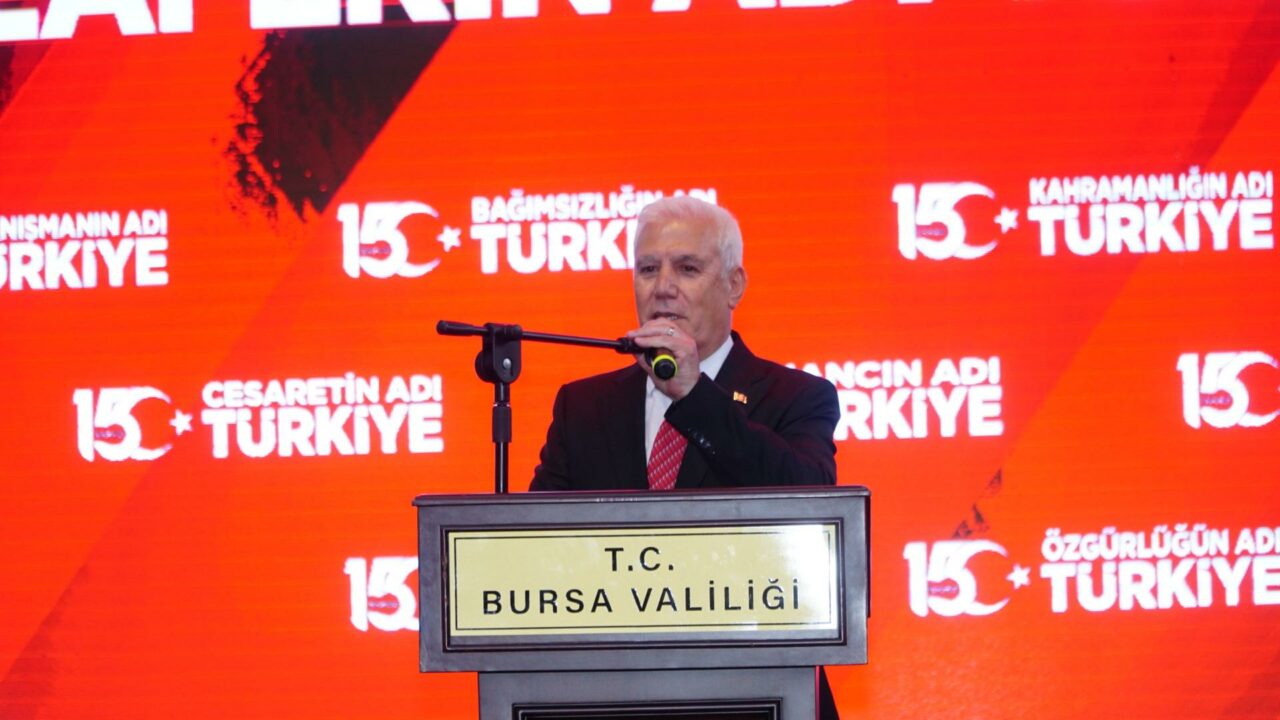 Törenin açılış konuşmasını yapan Bursa Valisi Erol Ayyıldız, 15 Temmuz’un yalnızca bir direniş değil, aynı zamanda bir milletin kaderine sahip çıktığı tarihi bir dönüm noktası olduğunu belirtti. Ayyıldız, “O gece olduğu gibi, bu akşam da ülkemizin tüm şehirlerinde meydanları boş bırakmayan, devletinden, milletinden ve demokrasisinden yana olan tüm vatandaşlarımızı Bursa’dan en kalbi duygularımla selamlıyorum. 15 Temmuz, bir kahramanlık adıdır. Bugün, gözlerini kırpmadan canını feda eden aziz şehitlerimizi rahmetle ve minnetle anıyoruz. O karanlık gecede milletimizin yazdığı destan, tarihimize altın harflerle kazınmıştır” dedi.
