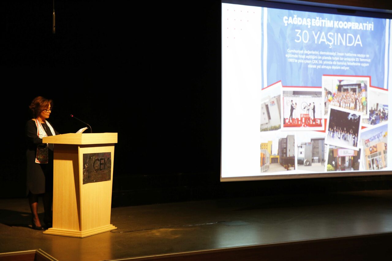 Çağdaş Eğitim Kooperatifi 3 Mart Eğitim Kurumları Yerleşkesi Konferans Salonu’nda 18 Nisan Cuma günü gerçekleştirilen 18. ÇEK Ödül Töreni, Yönetim Kurulu Başkanı Nihan Alpay’ın ve protokol üyelerinin açılış konuşmasıyla başladı.