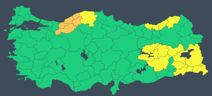 Hava durumu potansiyel tehlikelidir. Tahmin edilen meteorolojik hadise olağandışı olmamakla birlikte, meteorolojik şartlardan etkilenebilecek faaliyetler konusunda dikkatli olunmalıdır.