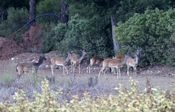 Üreme istasyonunda alageyiklerin beslenmesi için yulaf, fiğ, burçak gibi bitkilerin yetiştirildiğini de anlatan Kamil, “Burada beslenme noktaları var ve alıştırmak için ot ve yem bırakıyoruz. Buralara kurulu kameralar ile de izleyebiliyoruz. Fiziksel olarak herhangi bir yaralanma veya hasta olanlara müdahale edilebiliyor. Ayrıca yaşam sahaları içine meyve ağaçları da dikiliyor. İstasyon ve Düzlerçamı ormanındaki toplam popülasyon 400’ün üzerinde, Aydın, Muğla ve Manavgat ile birlikte de 500 civarında alageyik var” dedi.