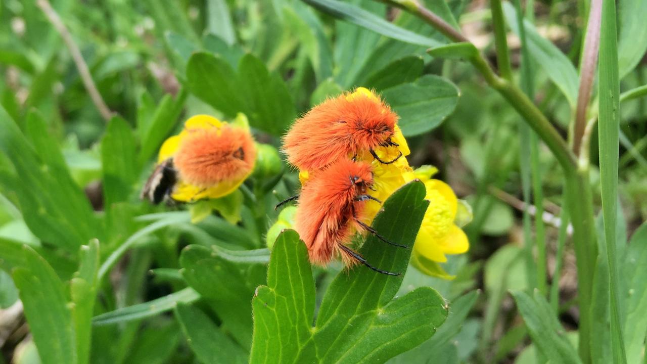 Turuncu ve kırmızının farklı tonlarında renklere sahip tüylerle kaplı böcekler Çam’ın ilgisini çekti.