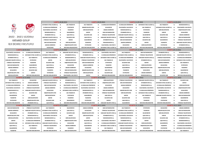 KIRMIZI GRUP İLKYARI FİKSTÜRÜ