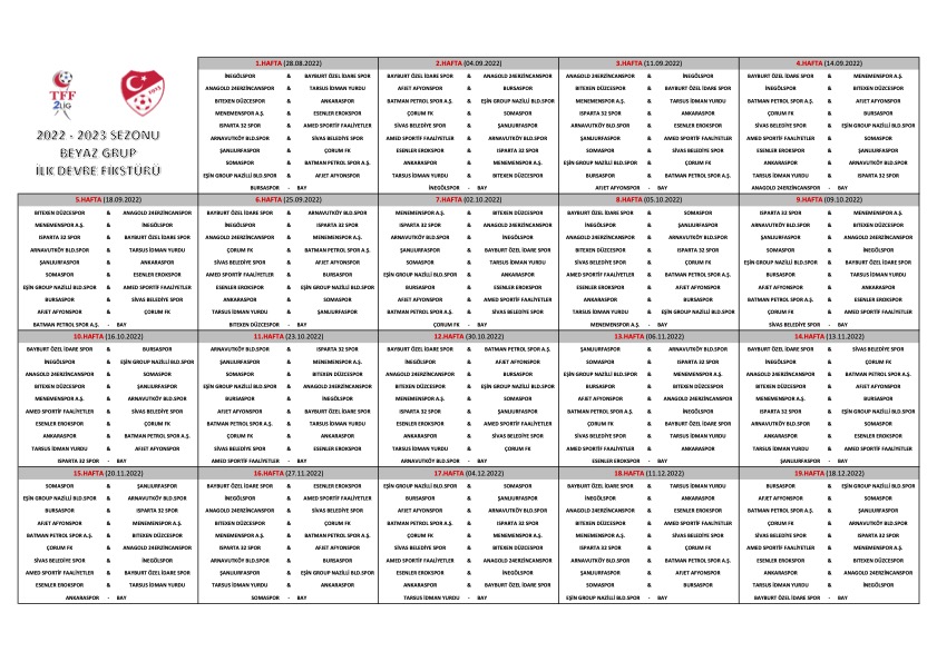 BEYAZ GRUP İLKYARI FİKSTÜRÜ