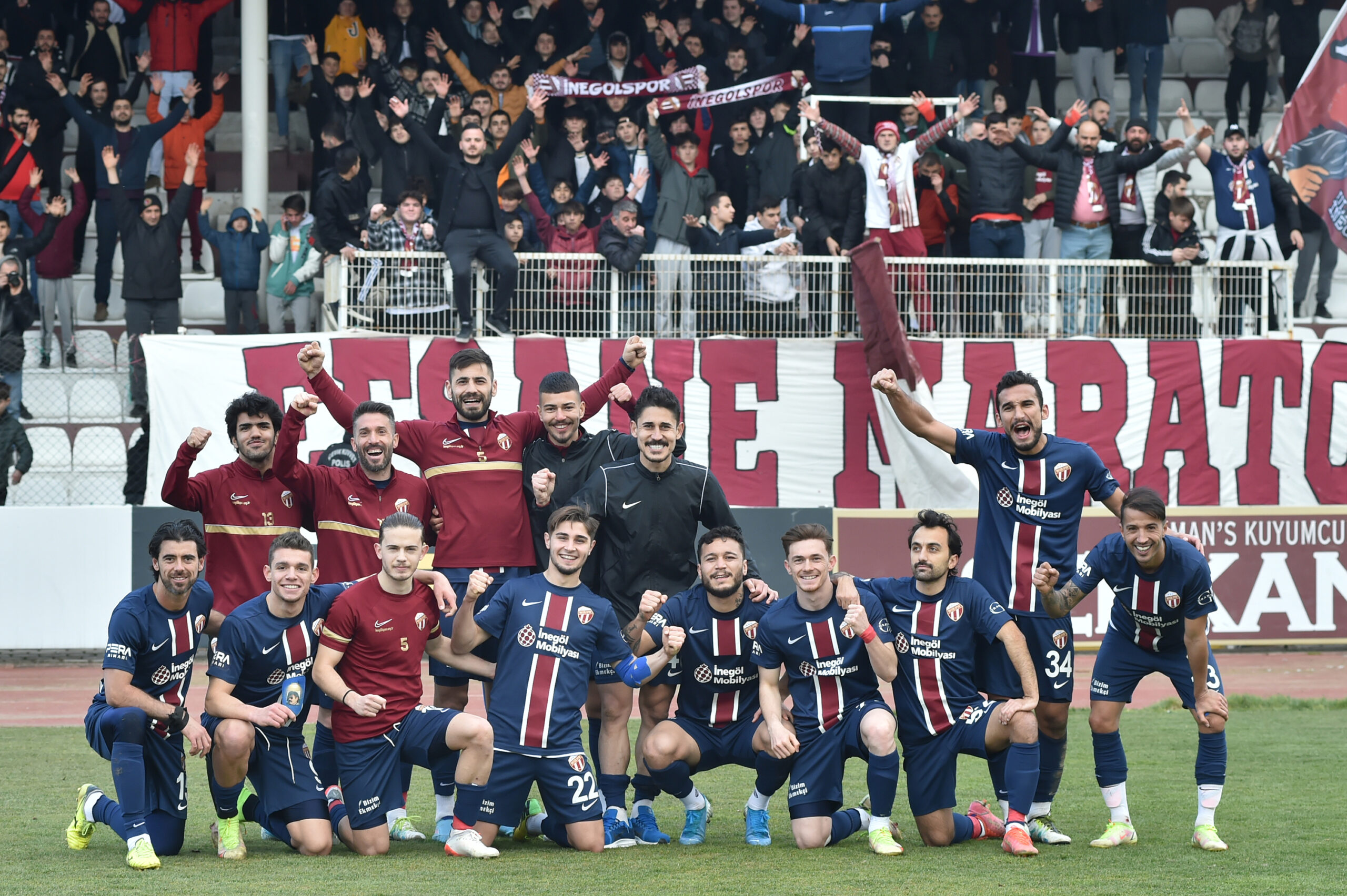 80’de Yusuf’un ortasında Samet kafa vuruşu ile topu ağlara gönderdi: 3-0. Ligde kalma mücadelesi veren Kahramanmaraş’ı farklı geçen İnegölspor puanını 48’e yükselterek 10. sıradaki yerini korudu. Çarşamba günü play-off yarışında Sivas Belediyespor ile deplasmanda kritik bir maça çıkacak olan bordo beyazlılar moral depoladı.