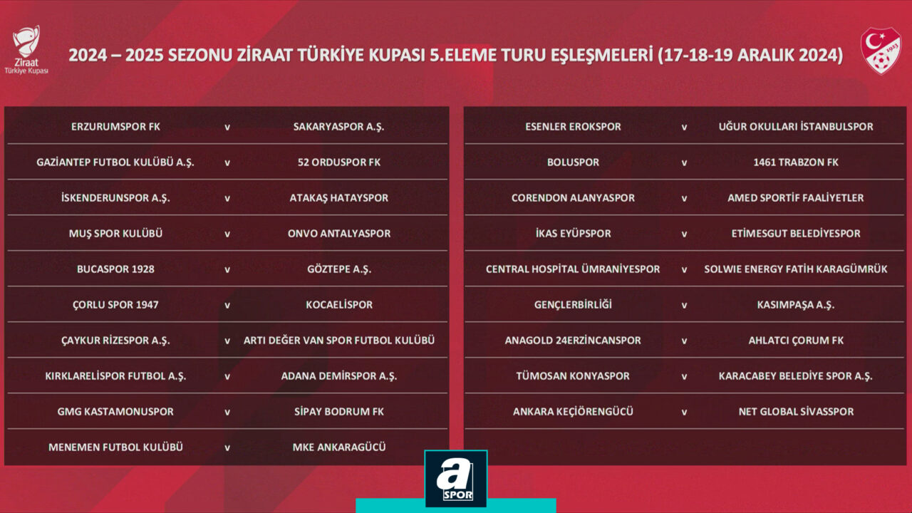 Öte yandan, Bursaspor’u penaltı atışları sonrası eleyen Vanspor FK’nın 5. Tur’daki rakibi ise Süper Lig ekibi Çaykur Rizespor oldu.