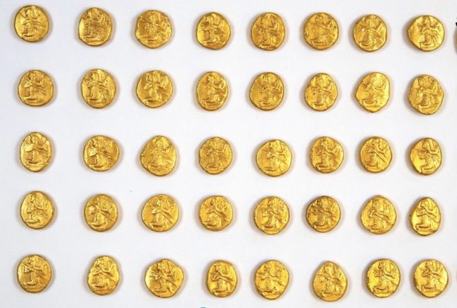 Kazı başkanı Prof. Dr. Christopher John Ratteve ve ekibi, İzmir’deki Notion Antik Kentinde bir evin altına gömülü, 2 bin 500 yıllık altın sikkelerle dolu bir çömlek keşfetti. Pers İmparatorluğu tarafından basılan bir altın sikke olan Pers Dareikos’unun tasarım unsuru olan diz çökmüş bir okçu figürünü taşıyan bu sikkelerin, M.Ö. 430 ve 427 yılları arasında, Notion’u işgal eden bir grup Pers yanlısı ve Yunan ve ‘barbar’ paralı askerler tarafından sonradan almak için kasıtlı olarak saklandığı düşünülüyor. Yunan tarihçi Ksenophon’a göre, tek bir Dareikos, bir askerin 1 aylık maaşına eş değerdi.
