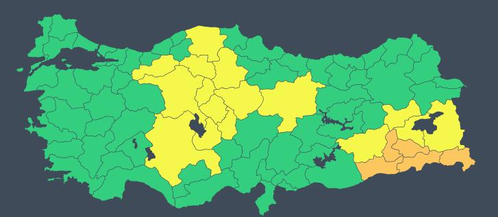 5 İL İÇİN TURUNCU, 16 İL İÇİN SARI KODLU UYARI