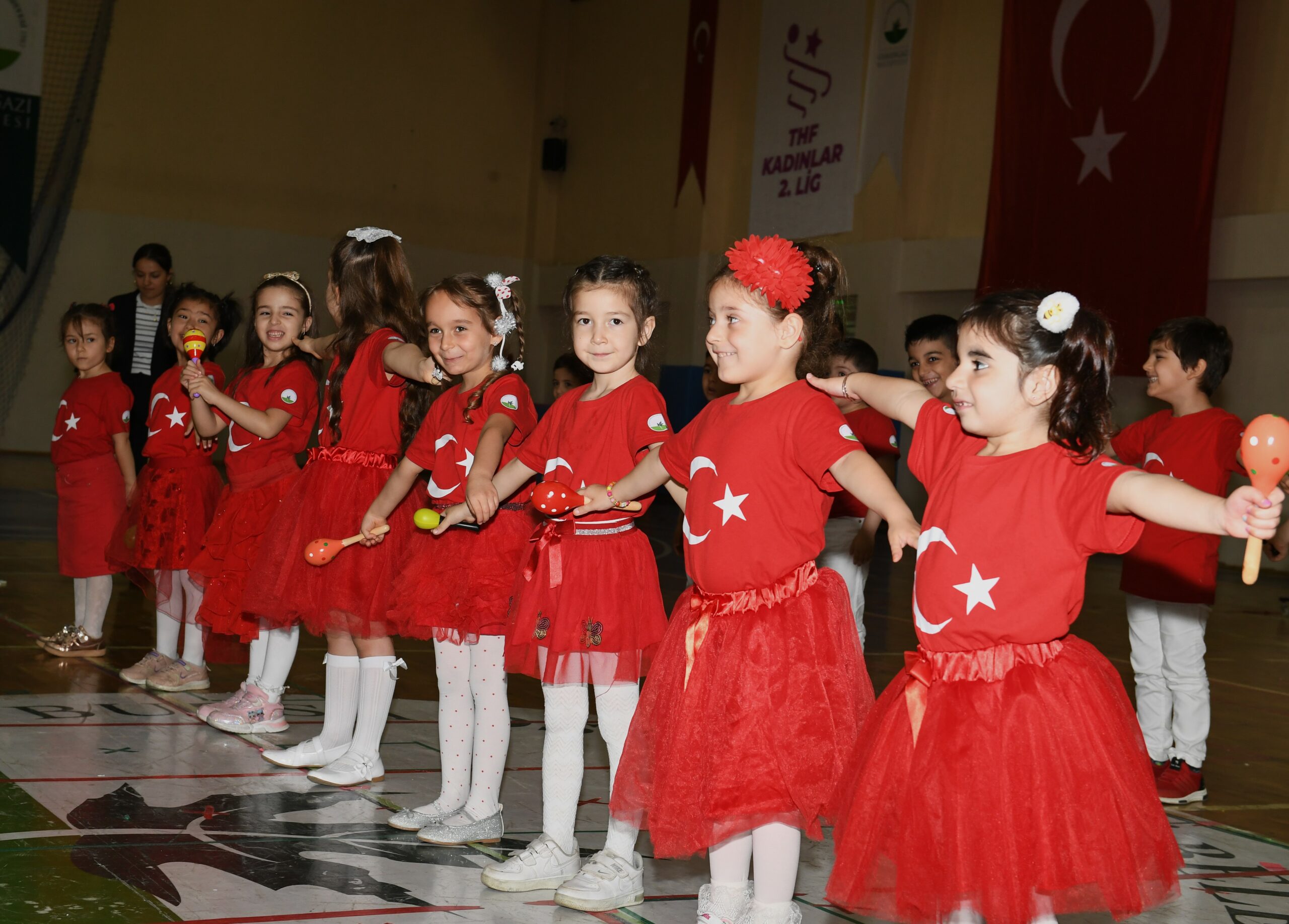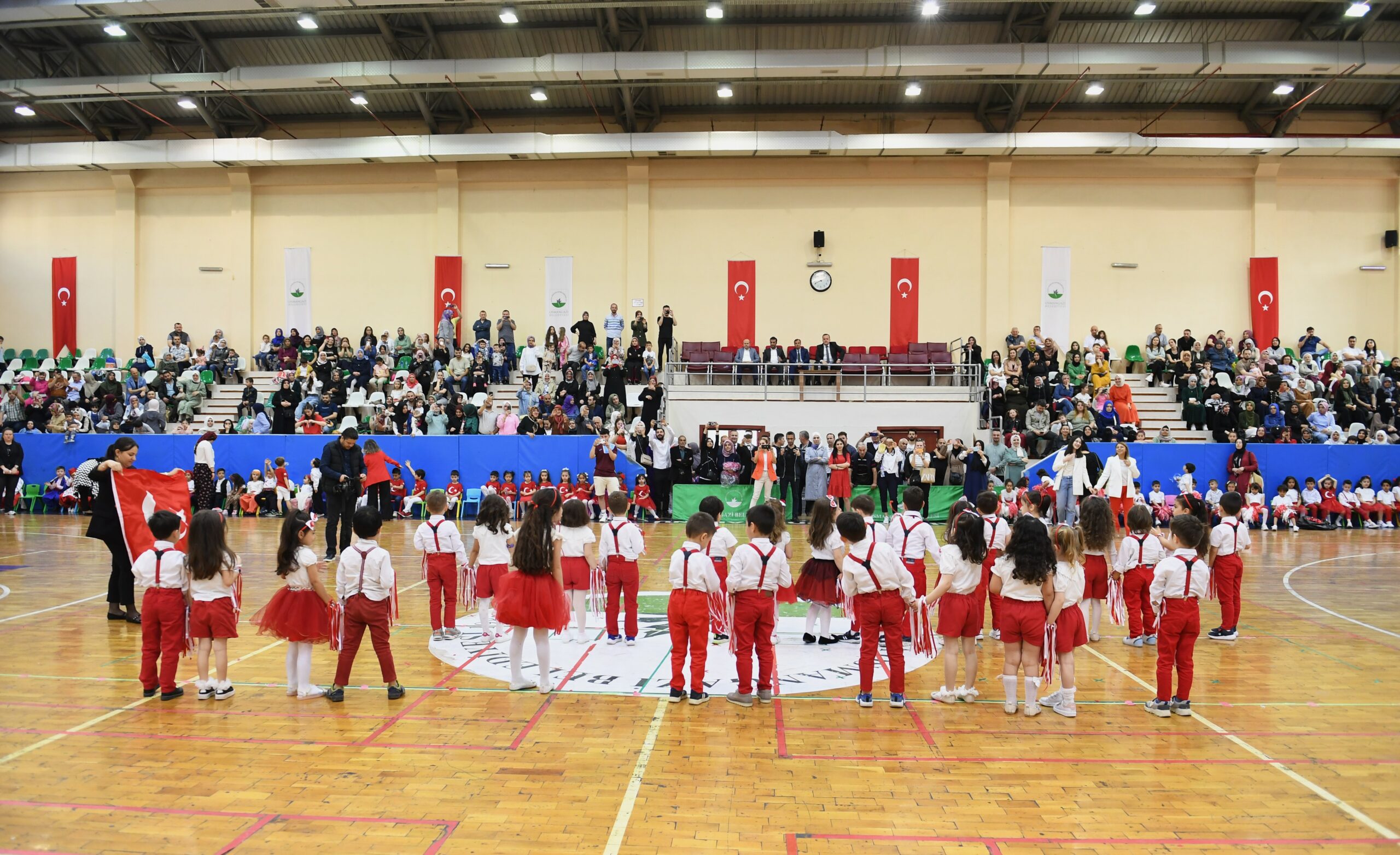 Osmangazi Belediyesi Gençlik ve Spor Hizmetleri Müdürlüğü bünyesinde faaliyet gösteren Hüdavendigar Sosyal Gelişim Merkezi ve Demirkapı Şükran Gönenç Bilgi Evi’nde eğitim gören 4-6 yaş arası 160 öğrenci 23 Nisan’a özel gösteri hazırladı.