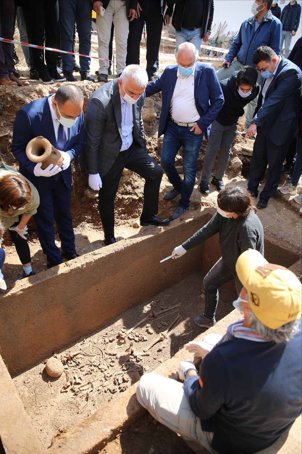 Ersoy, Yokuşbaşı Mahallesi Cevat Şakir Caddesi’nde bir inşaatın temel kazısında ortaya çıkan ve Bodrum Kalesi Sualtı Arkeoloji Müze Müdürlüğünce kazı çalışması başlatılan lahit mezar alanında inceleme yaptı.