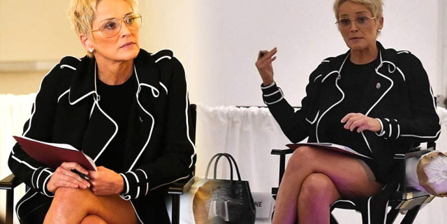 Siyah mini elbise giyen Sharon Stone, yüksek bir sandalyede oturarak konuşma yaptı. Bu görüntü, ünlü oyuncuya 34 yaşından sonra dünya çapında şöhret getiren ‘Temel İçgüdü’ filmindeki unutulmaz sahnesini hatırlattı.