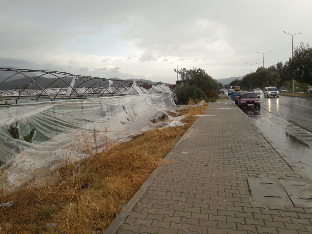 Kuvvetli rüzgar nedeniyle ilçedeki Yeni Camisi’nin minaresi yıkıldı, evlerin çatıları uçtu, araçlarda hasar oluştu. Dolu nedeniyle bölgedeki seralar zarar gördü.