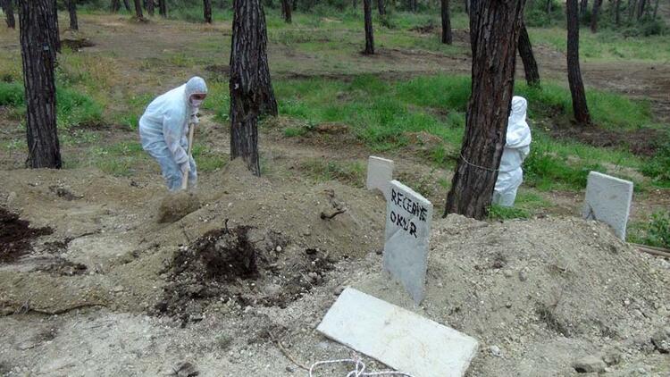 İncirbelen’in cenazesi, cenaze namazının ardından daha önce korona virüsten yaşamını yitiren Recebiye Okur’un yanında hazırlanmış yaklaşık 3 metre derinliğindeki mezara tabut içerisinde konuldu.
