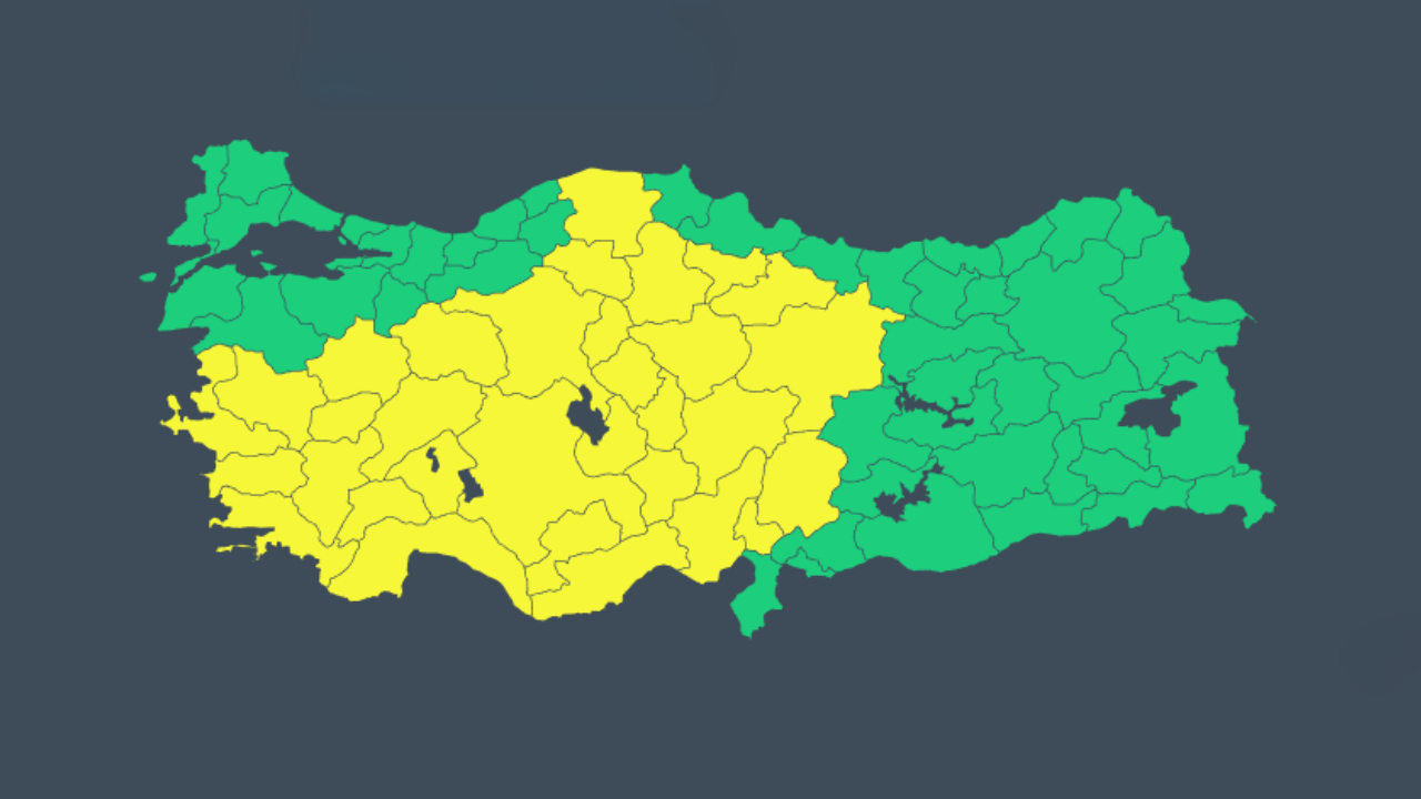 Meteoroloji Genel Müdürlüğü Adana, Afyonkarahisar, Amasya, Ankara, Antalya, Aydın, Burdur, Çankırı, Çorum, Denizli, Eskişehir, Isparta, Mersin, İzmir, Kastamonu, Kayseri, Kırşehir, Konya, Kütahya, Manisa, K.Maraş, Muğla, Nevşehir, Niğde, Sivas, Tokat, Uşak, Yozgat, Aksaray, Karaman, Kırıkkale ve Osmaniye için sarı kodlu uyarıda bulundu.