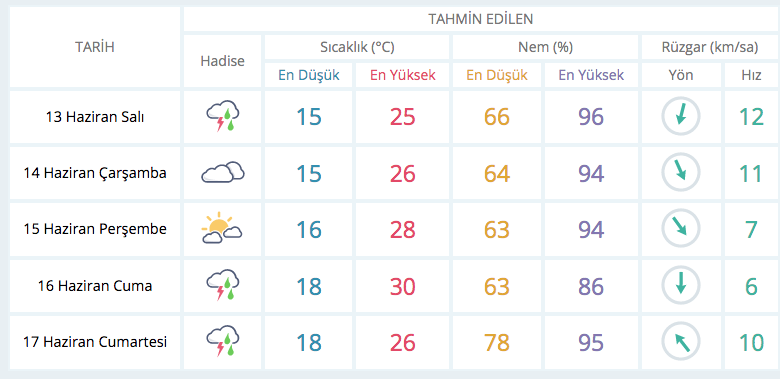 BURSA 5 GÜNLÜK TAHMİN