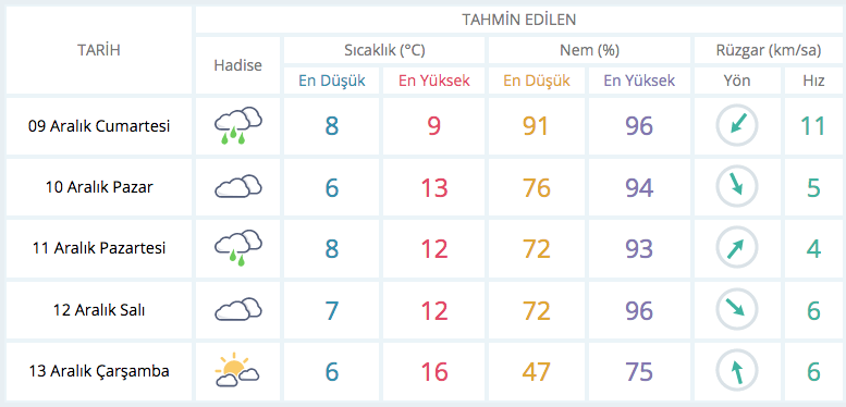 Çok bulutlu, aralıklı yağmur ve sağanak yağışlı geçeceği tahmin ediliyor. Yağışların yerel olmak üzere kuvvetli olması bekleniyor.